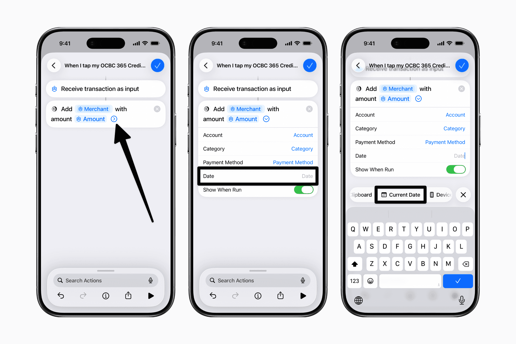 Since this shortcut runs when you make a payment, you can also prefill the date with today’s date.